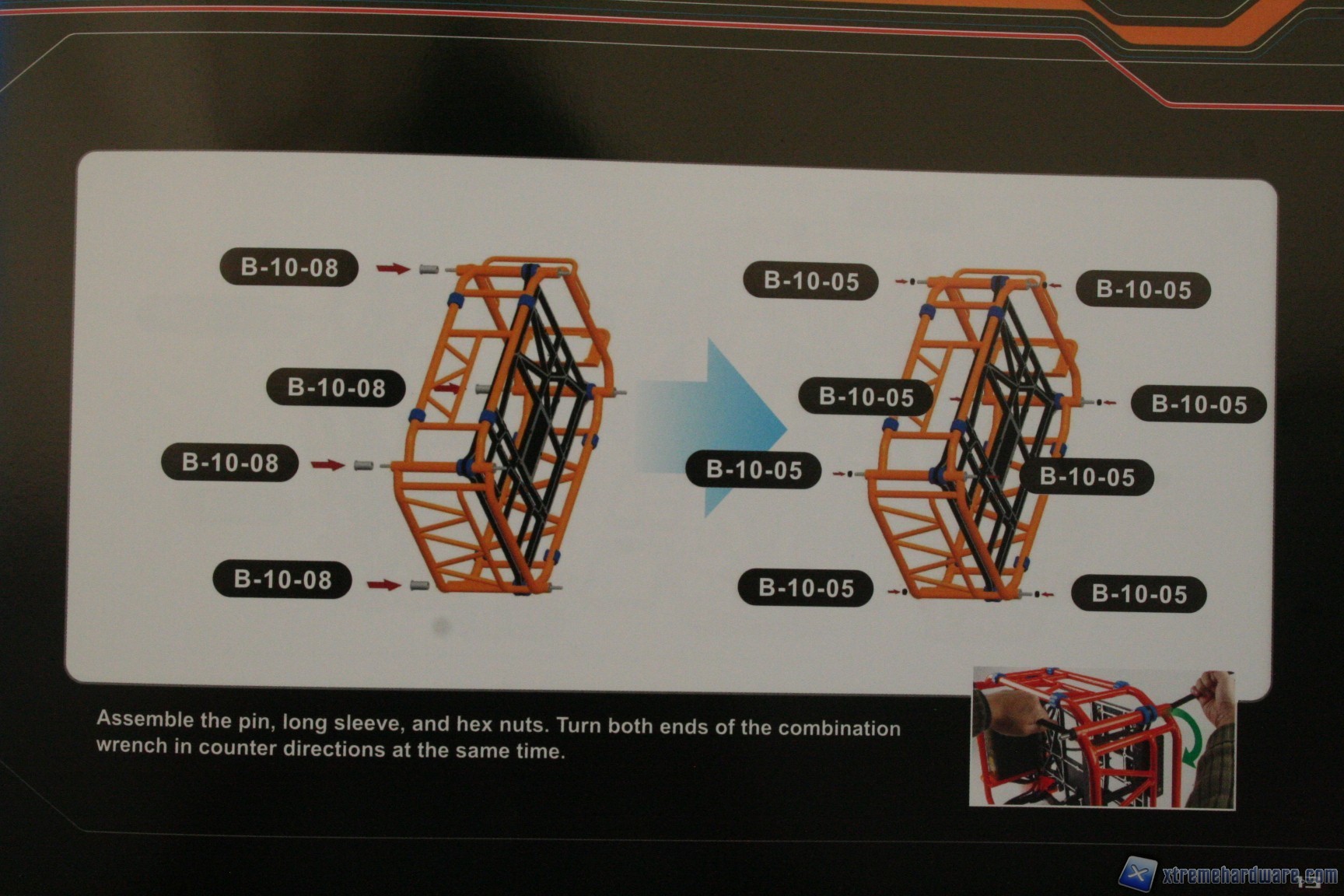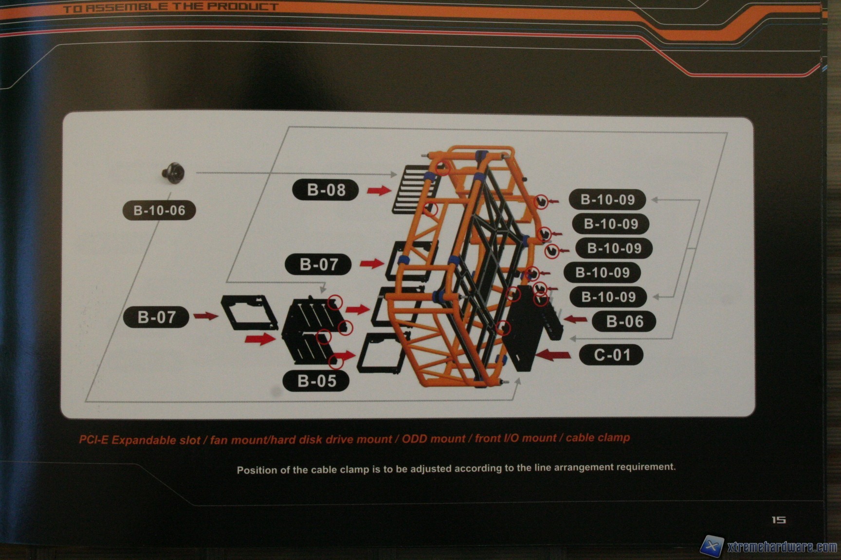 - - Fatto questo il telaio è pronto, ora rimane fissare il cage per gli hard disk (B-05), il plate posteriore per la periferica da 5.25” (C-01), i fermi passacavi (B-10-09), il meccanismo di blocco delle periferiche PCI (B-08) ed infine i quattro supporti per ventole da 120mm (B-07), grazie alle viti in dotazione (B-10-06).